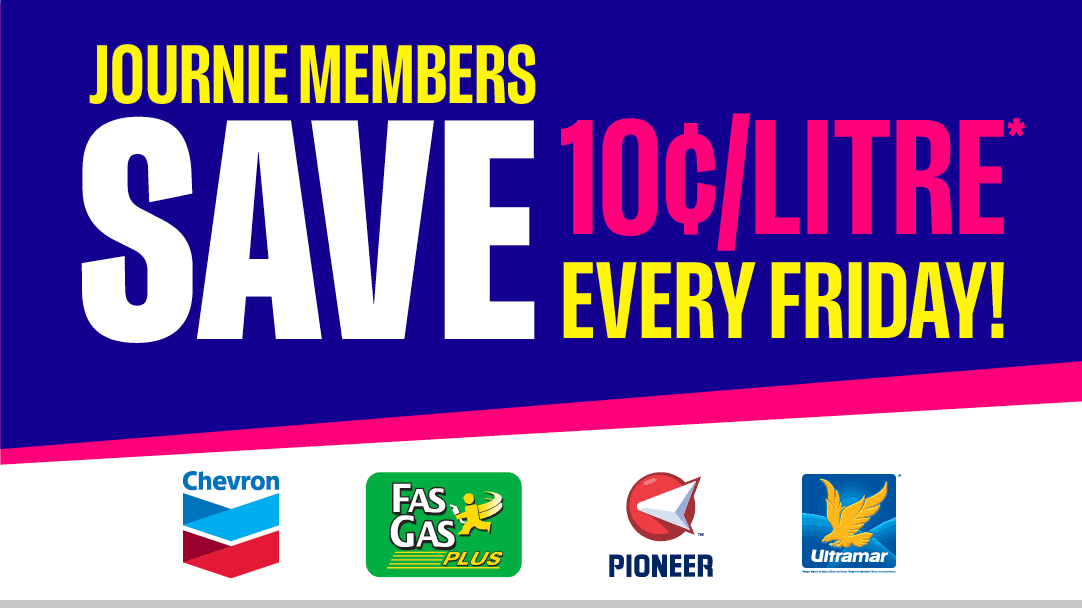 Journie members save 10¢/L on gas every Friday. Cha-ching!