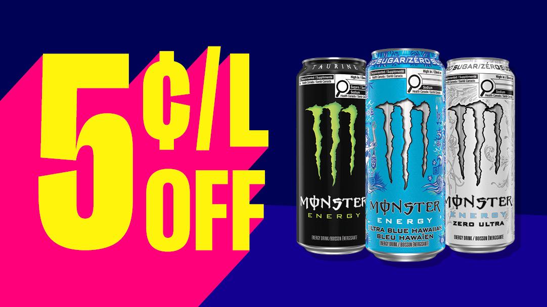 5¢/L off gas with 3 Monsters!