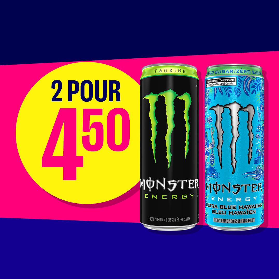 Dites adieu aux pannes d’énergie avec 2 boissons Monster Energy (355 ml) pour 4,50 $! Une offre à partager... ou à garder pour soi. À vous de choisir!
