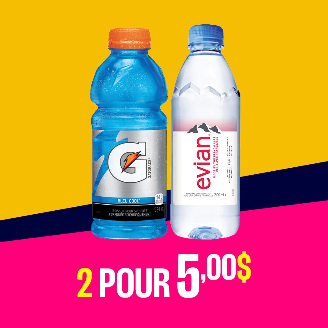 Étanchez votre soif et restez bien au frais avec Gatorade 591ml et Evian 500ml – choisissez-en 2 pour 5 $ seulement! C’est l’offre idéale pour vous réhydrater après une séance d’entraînement ou simplement pour vous offrir un petit remontant.