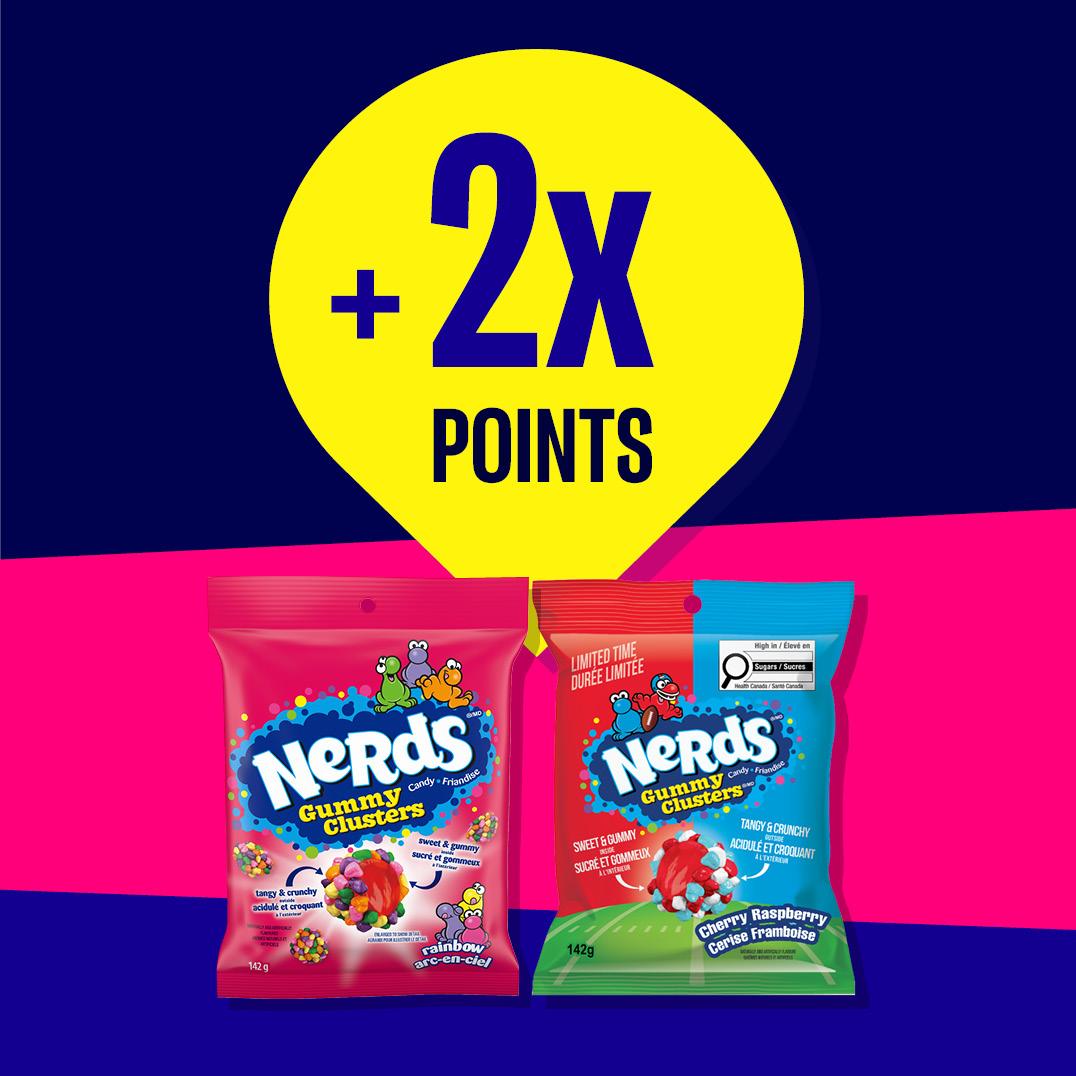 Tiny candies, huge fun! 2 packs of Nerds for $6 + 2X points. Let your inner Nerd celebrate with bonus points!