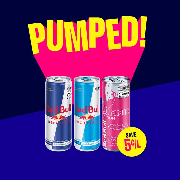 For a limited time, when you purchase any three Red Bull 250ml cans for just $7, you’ll save 5¢ per litre on your next gas fill-up. That’s energy for now and savings for later!