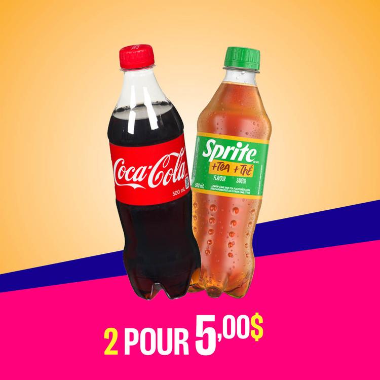 Désaltérez-vous et économisez avec cette offre géniale! Achetez deux boissons gazeuses Coca-Cola de 500 ml pour 5 $ seulement. C’est la façon parfaite d’étancher votre soif tout en vous délectant de la saveur classique de Coca-Cola.