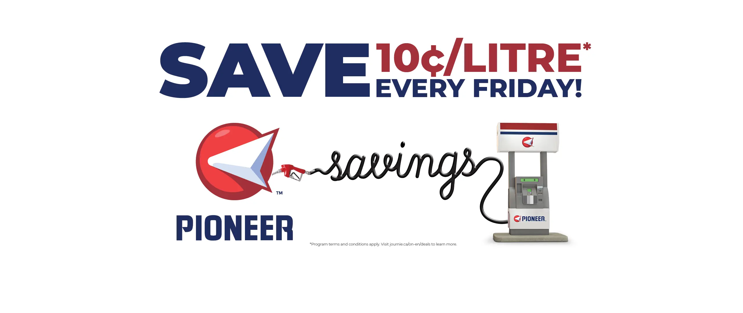 With hundreds of full service gas stations across Ontario, Pioneer makes a convenient one-stop shop for all your basic (and not so basic) needs, at prices you'll more than appreciate.