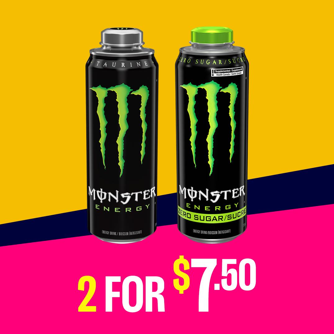 Deal runs from July 16, 2025, 12:00:00 am – September 16, 2025, 11:59:59 pm. Journie members may buy 2 Monster Energy Drinks (710ml) for $7.50. Non-member retail price: $5.59 – $5.69 per unit. Deposit, levies & taxes where applicable. Limit of 6 products per transaction, per person, per day. Deposits, levies, and taxes where applicable. For participating stations, visit the LOCATIONS page on your Journie app or journie.ca to find a store where you can earn Journie Rewards. Not applicable at independent dealer locations.