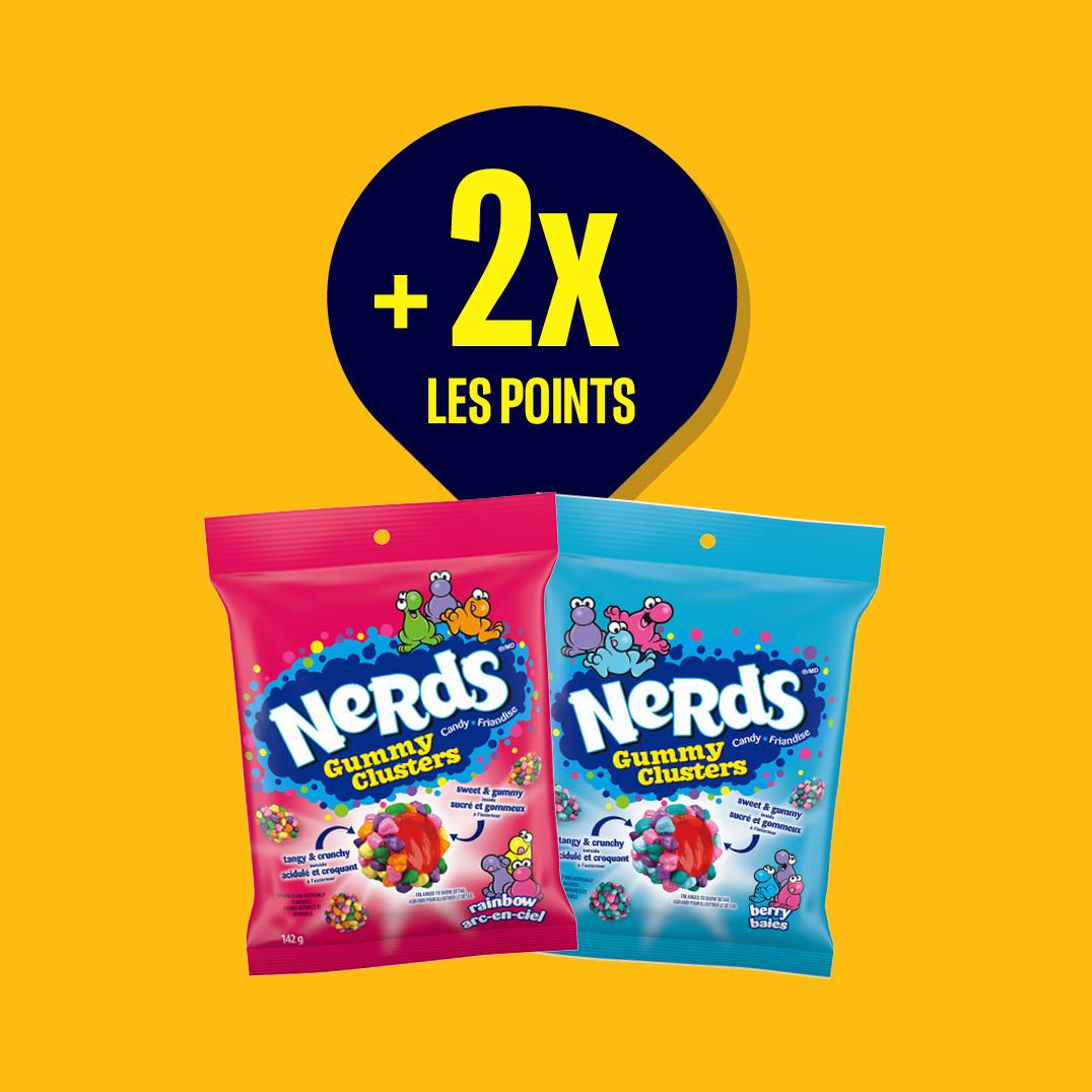Procurez-vous 2 bonbons Nerds pour seulement 7 $ et obtenez le double de points ! Parfait pour combler votre dent sucrée tout en accumulant des récompenses.